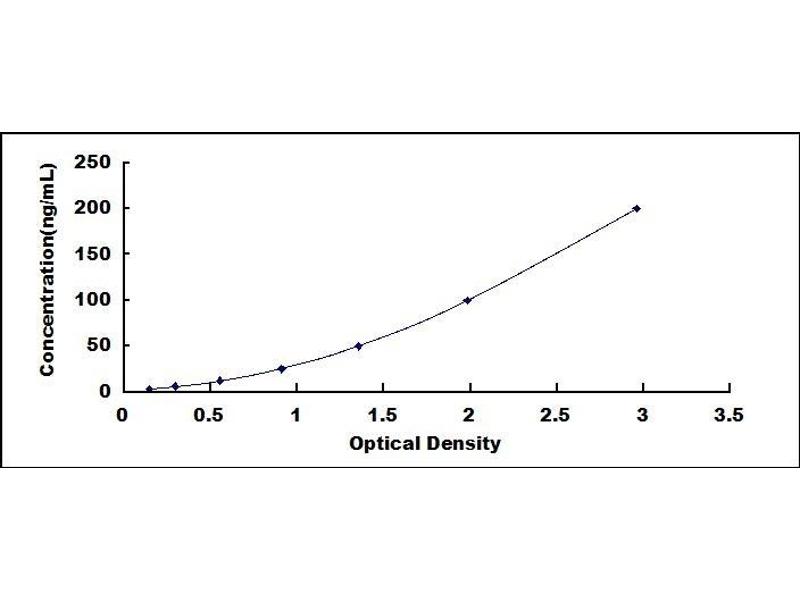In order to make the calculation easier, we plot the O.D. value of the standard (X-axis) against the log of concentration of the standard (Y-axis), although concentration is the independent variable and O.D. value is the dependent variable. The O.D. values of the standard curve may vary according to the conditions of assay performance (e.g. operator, pipetting technique, washing technique or temperature effects). Typical standard curve below is provided for reference only. -