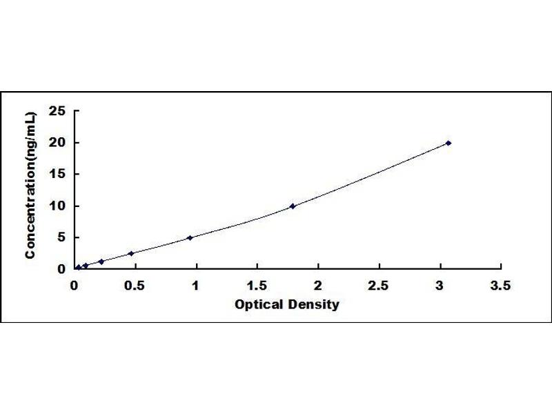 - Standard - Reconstitute the Standard with 1.0 mL of Standard Diluent, keep for 10 minutes at room temperature, shake gently (not to foam). The concentration of the standard in the stock solution is 40 ng/mL. Firstly dilute the stock solution to 20 ng/mL and the diluted standard serves as the highest standard (20 ng/mL). Then prepare 7 tubes containing 0.5 mL Standard Diluent and use the diluted standard to produce a double dilution series. Mix each tube thoroughly before the next transfer. Set up 7 points of diluted standard such as 20 ng/mL, 10 ng/mL, 5 ng/mL, 2.5 ng/mL, 1.25 ng/mL, 0.625 ng/mL, 0.312 ng/mL, and the last microcentrifuge tube with Standard Diluent is the blank as 0 ng/mL.