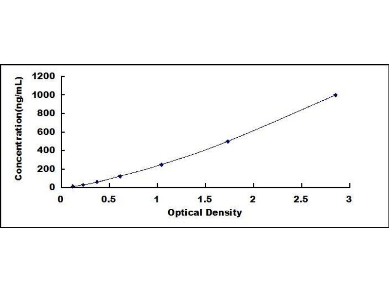 - Standard - Reconstitute the Standard with 1.0 mL of Standard Diluent, keep for 10 minutes at room temperature, shake gently (not to foam). The concentration of the standard in the stock solution is 1,000 ng/mL. Prepare 7 tubes containing 0.5 mL Standard Diluent and produce a double dilution series. Mix each tube thoroughly before the next transfer. Set up 7 points of diluted standard such as 1,000 ng/mL, 500 ng/mL, 250 ng/mL, 125 ng/mL, 62.5 ng/mL, 31.2 ng/mL, 15.6 ng/mL, and the last microcentrifuge tube with Standard Diluent is the blank as 0 ng/mL.
