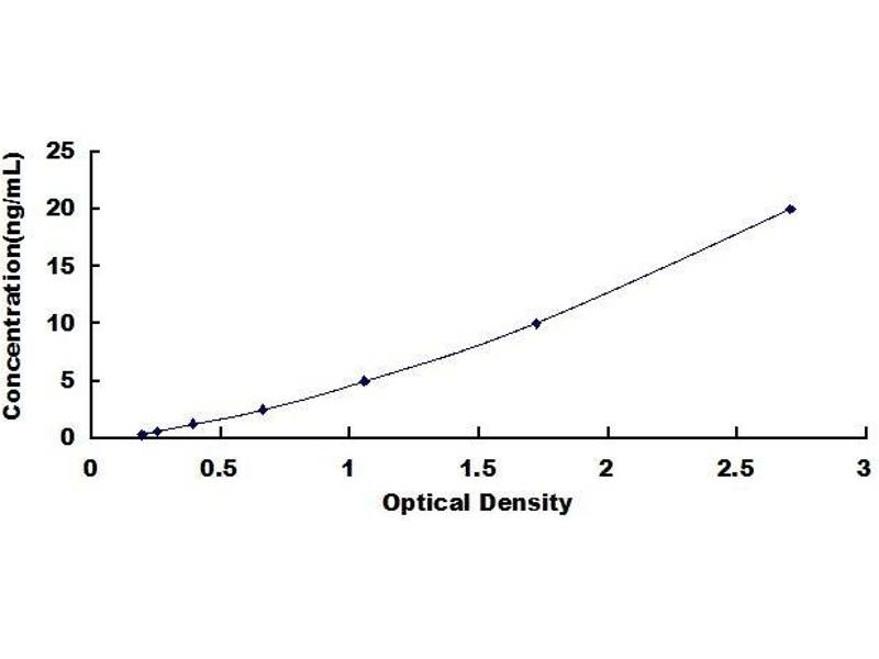 - Standard - Reconstitute the Standard with 1.0 mL of Standard Diluent, keep for 10 minutes at room temperature, shake gently (not to foam). The concentration of the standard in the stock solution is 80 ng/mL. Firstly dilute the stock solution to 20 ng/mL and the diluted standard serves as the highest standard (20 ng/mL). Then prepare 7 tubes containing 0.5 mL Standard Diluent and use the diluted standard to produce a double dilution series. Mix each tube thoroughly before the next transfer. Set up 7 points of diluted standard such as 20 ng/mL, 10 ng/mL, 5 ng/mL, 2.5 ng/mL, 1.25 ng/mL, 0.625 ng/mL, 0.312 ng/mL, and the last microcentrifuge tube with Standard Diluent is the blank as 0 ng/mL.