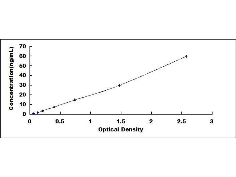 - Standard - Reconstitute the Standard with 1.0 mL of Standard Diluent, keep for 10 minutes at room temperature, shake gently (not to foam). The concentration of the standard in the stock solution is 120 ng/mL. Firstly dilute the stock solution to 60 ng/mL and the diluted standard serves as the highest standard (60 ng/mL). Then prepare 7 tubes containing 0.5 mL Standard Diluent and use the diluted standard to produce a double dilution series. Mix each tube thoroughly before the next transfer. Set up 7 points of diluted standard such as 60 ng/mL, 30 ng/mL, 15 ng/mL, 7.5 ng/mL, 3.75 ng/mL, 1.88 ng/mL, 0.94 ng/mL, and the last microcentrifuge tube with Standard Diluent is the blank as 0 ng/mL.