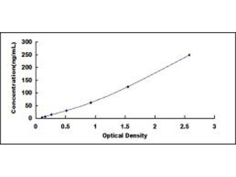 - Standard - Reconstitute the Standard with 1.0 mL of Standard Diluent, keep for 10 minutes at room temperature, shake gently (not to foam). The concentration of the standard in the stock solution is 2,000 ng/mL. Firstly dilute the stock solution to 250 ng/mL and the diluted standard serves as the highest standard (250 ng/mL). Then prepare 7 tubes containing 0.5 mL Standard Diluent and use the diluted standard to produce a double dilution series. Mix each tube thoroughly before the next transfer. Set up 7 points of diluted standard such as 250 ng/mL, 125 ng/mL, 62.5 ng/mL, 31.2 ng/mL, 15.6 ng/mL, 7.8 ng/mL, 3.9 ng/mL, and the last microcentrifuge tube with Standard Diluent is the blank as 0 ng/mL.