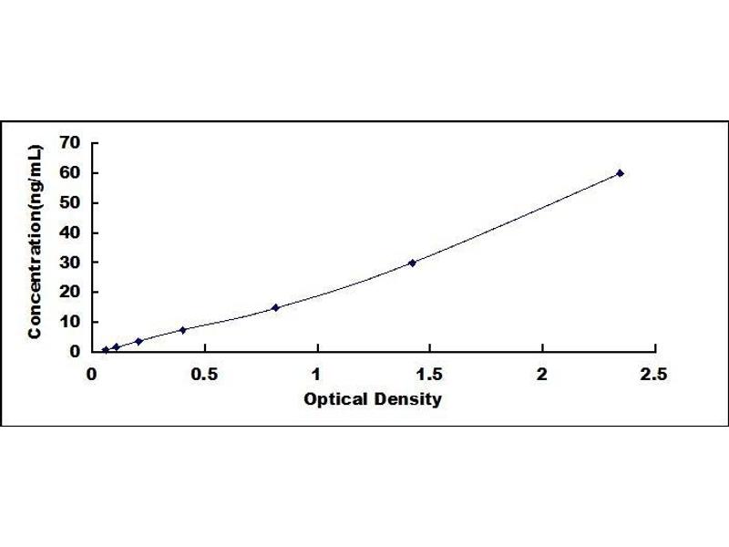 - Standard - Reconstitute the Standard with 1.0 mL of Standard Diluent, keep for 10 minutes at room temperature, shake gently (not to foam). The concentration of the standard in the stock solution is 60 ng/mL. Prepare 7 tubes containing 0.5 mL Standard Diluent and produce a double dilution series. Mix each tube thoroughly before the next transfer. Set up 7 points of diluted standard such as 60 ng/mL, 30 ng/mL, 15 ng/mL, 7.5 ng/mL, 3.75 ng/mL, 1.88 ng/mL, 0.94 ng/mL, and the last microcentrifuge tube with Standard Diluent is the blank as 0 ng/mL.