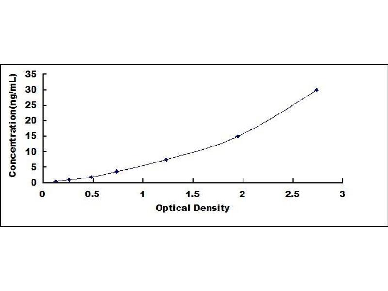 - Standard - Reconstitute the Standard with 1.0 mL of Standard Diluent, kept for 10 minutes at room temperature, shake gently (not to foam). The concentration of the standard in the stock solution is 60 ng/mL. Please firstly dilute the stock solution to 30 ng/mL and the diluted standard serves as the highest standard (30ng/mL). Then prepare 7 tubes containing 0.5 mL Standard Diluent and use the diluted standard to produce a double dilution series. Mix each tube thoroughly before the next transfer. Set up 7 points of diluted standard such as 30ng/mL, 15ng/mL, 7.5ng/mL, 3.75ng/mL, 1.88ng/mL, 0.94ng/mL, 0.47ng/mL, and the last tube with Standard Diluent is the blank as 0ng/mL.