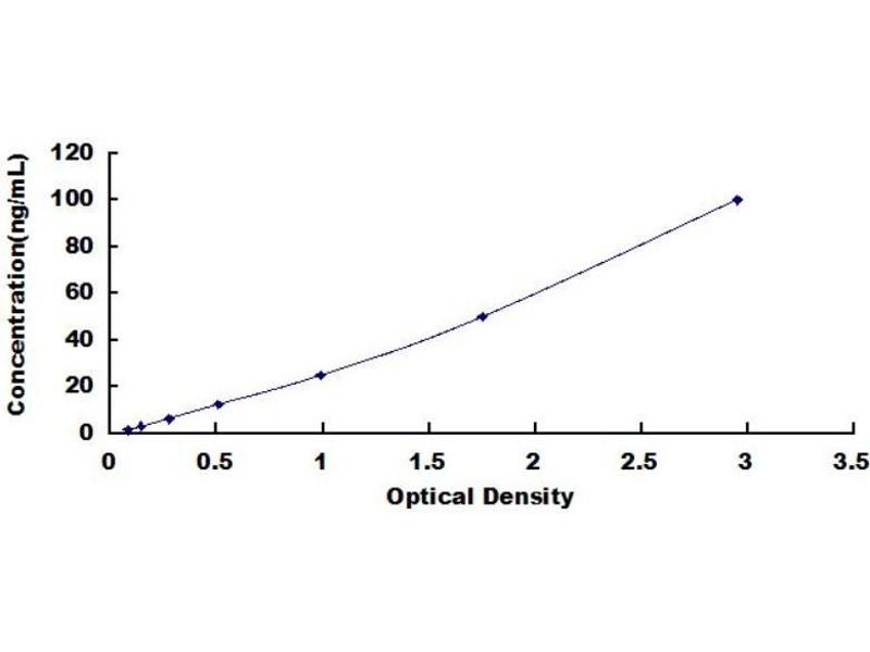 - Standard - Reconstitute the Standard with 1.0 mL of Standard Diluent, keep for 10 minutes at room temperature, shake gently (not to foam). The concentration of the standard in the stock solution is 100 ng/mL. Prepare 7 tubes containing 0.5 mL Standard Diluentand produce a double dilution series. Mix each tube thoroughly before the next transfer. Set up 7 points of diluted standard such as 100 ng/mL, 50 ng/mL, 25 ng/mL, 12.5 ng/mL, 6.25 ng/mL, 3.12 ng/mL, 1.56 ng/mL, and the last tube with Standard Diluent is the blank as 0 ng/mL