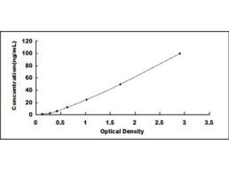 - Standard - Reconstitute the Standard with 1.0 mL of Standard Diluent, keep for 10 minutes at room temperature, shake gently (not to foam). The concentration of the standard in the stock solution is 200 ng/mL. Firstly dilute the stock solution to 100 ng/mL and the diluted standard serves as the highest standard (100 ng/mL). Then prepare 7 tubes containing 0.5 mL Standard Diluent and use the diluted standard to produce a double dilution series. Mix each tube thoroughly before the next transfer. Set up 7 points of diluted standard such as 100 ng/mL, 50 ng/mL, 25 ng/mL, 12.5 ng/mL, 6.25 ng/mL, 3.12 ng/mL, 1.56 ng/mL, and the last microcentrifuge tube with Standard Diluent is the blank as 0 ng/mL.