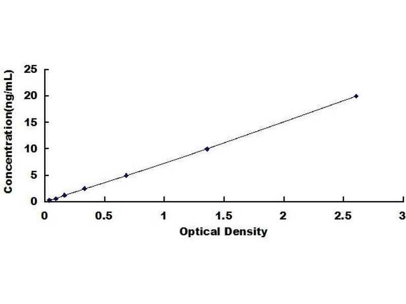 - Standard - Reconstitute the Standard with 1.0 mL of Standard Diluent, keep for 10 minutes at room temperature, shake gently (not to foam). The concentration of the standard in the stock solution is 160 ng/mL. Firstly dilute the stock solution to 20 ng/mL and the diluted standard serves as the highest standard (20 ng/mL). Then prepare 7 tubes containing 0.5 mL Standard Diluent and use the diluted standard to produce a double dilution series. Mix each tube thoroughly before the next transfer. Set up 7 points of diluted standard such as 20 ng/mL, 10 ng/mL, 5 ng/mL, 2.5 ng/mL, 1.25 ng/mL, 0.625 ng/mL, 0.312 ng/mL, and the last microcentrifuge tube with Standard Diluent is the blank as 0 ng/mL.