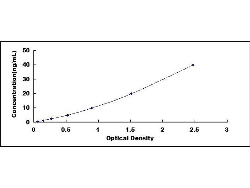 - Standard - Reconstitute the Standard with 1.0 mL of Standard Diluent, keep for 10 minutes at room temperature, shake gently (not to foam). The concentration of the standard in the stock solution is 80 ng/mL. Firstly dilute the stock solution to 40 ng/mL and the diluted standard serves as the highest standard (40 ng/mL). Then prepare 7 tubes containing 0.5 mL Standard Diluent and use the diluted standard to produce a double dilution series. Mix each tube thoroughly before the next transfer. Set up 7 points of diluted standard such as 40 ng/mL, 20 ng/mL, 10 ng/mL, 5 ng/mL, 2.5 ng/mL, 1.25 ng/mL, 0.625 ng/mL, and the last microcentrifuge tube with Standard Diluent is the blank as 0 ng/mL.
