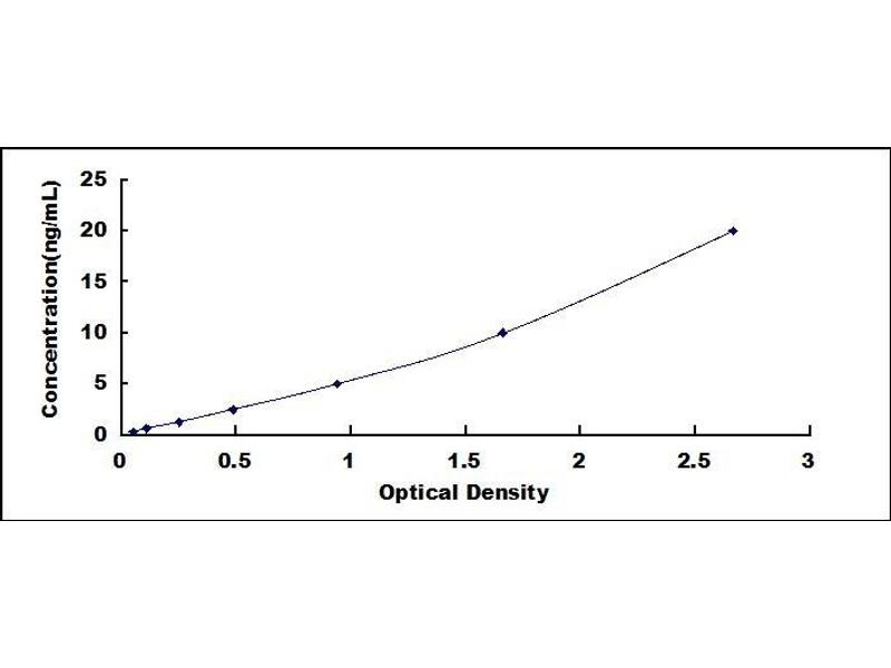 - Standard - Reconstitute the Standard with 1.0 mL of Standard Diluent, keep for 10 minutes at room temperature, shake gently (not to foam). The concentration of the standard in the stock solution is 40 ng/mL. Firstly dilute the stock solution to 20 ng/mL and the diluted standard serves as the highest standard (20 ng/mL). Then prepare 7 tubes containing 0.5 mL Standard Diluent and use the diluted standard to produce a double dilution series. Mix each tube thoroughly before the next transfer. Set up 7 points of diluted standard such as 20 ng/mL, 10 ng/mL, 5 ng/mL, 2.5 ng/mL, 1.25 ng/mL, 0.625 ng/mL, 0.312 ng/mL, and the last microcentrifuge tube with Standard Diluent is the blank as 0 ng/mL.