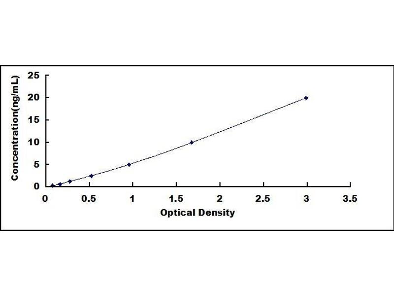 - Standard - Reconstitute the Standard with 1.0 mL of Standard Diluent, keep for 10 minutes at room temperature, shake gently (not to foam). The concentration of the standard in the stock solution is 40 ng/mL. Firstly dilute the stock solution to 20 ng/mL and the diluted standard serves as the highest standard (20 ng/mL). Then prepare 7 tubes containing 0.5 mL Standard Diluent and use the diluted standard to produce a double dilution series. Mix each tube thoroughly before the next transfer. Set up 7 points of diluted standard such as 20 ng/mL, 10 ng/mL, 5 ng/mL, 2.5 ng/mL, 1.25 ng/mL, 0.625 ng/mL, 0.312 ng/mL, and the last microcentrifuge tube with Standard Diluent is the blank as 0 ng/mL.