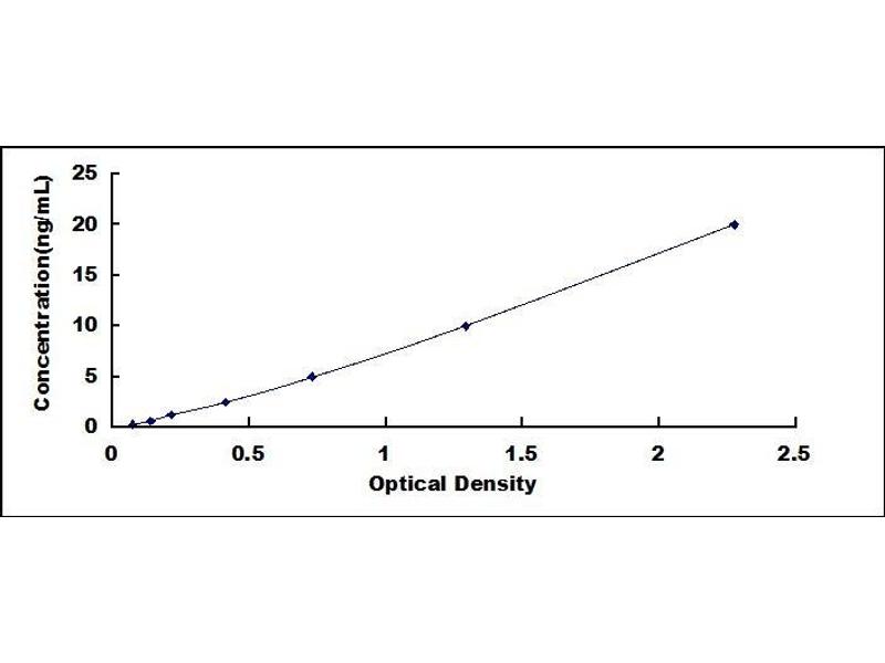 - Standard - Reconstitute the Standard with 1.0 mL of Standard Diluent, keep for 10 minutes at room temperature, shake gently (not to foam). The concentration of the standard in the stock solution is 80 ng/mL. Firstly dilute the stock solution to 20 ng/mL and the diluted standard serves as the highest standard (20 ng/mL). Then prepare 7 tubes containing 0.5 mL Standard Diluent and use the diluted standard to produce a double dilution series. Mix each tube thoroughly before the next transfer. Set up 7 points of diluted standard such as 20 ng/mL, 10 ng/mL, 5 ng/mL, 2.5 ng/mL, 1.25 ng/mL, 0.625 ng/mL, 0.312 ng/mL, and the last microcentrifuge tube with Standard Diluent is the blank as 0 ng/mL.