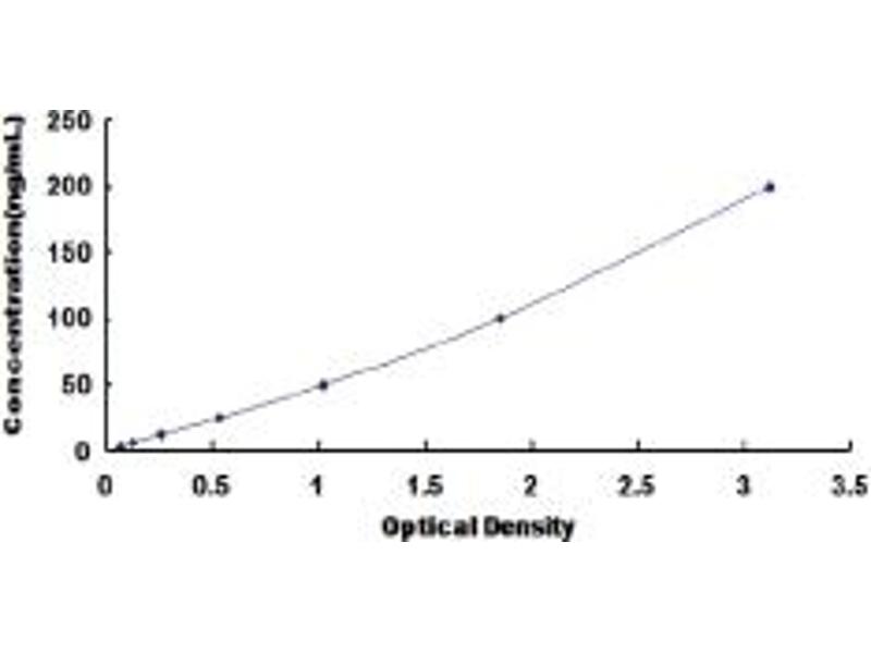 In order to make the calculation easier, we plot the O.D. value of the standard (X-axis) against the log of concentration of the standard (Y-axis), although concentration is the independent variable and O.D. value is the dependent variable. The O.D. values of the standard curve may vary according to the conditions of assay performance (e.g. operator, pipetting technique, washing technique or temperature effects). Typical standard curve below is provided for reference only. -