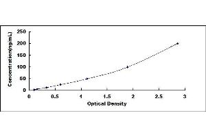 In order to make the calculation easier, we plot the O.D. value of the standard (X-axis) against the log of concentration of the standard (Y-axis), although concentration is the independent variable and O.D. value is the dependent variable. The O.D. values of the standard curve may vary according to the conditions of assay performance (e.g. operator, pipetting technique, washing technique or temperature effects). Typical standard curve below is provided for reference only. -