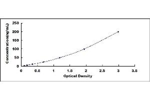 In order to make the calculation easier, we plot the O.D. value of the standard (X-axis) against the log of concentration of the standard (Y-axis), although concentration is the independent variable and O.D. value is the dependent variable. The O.D. values of the standard curve may vary according to the conditions of assay performance (e.g. operator, pipetting technique, washing technique or temperature effects). Typical standard curve below is provided for reference only. -