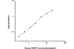 Intra-assay Precision (Precision within an assay): 3 samples with low, mid range and high level Human CASP3 were tested 20 times on one plate, respectively. Inter-assay Precision (Precision between assays): 3 samples with low, mid range and high level Human CASP3 were tested on 3 different plates, 20 replicates in each plate. Both intra-CV and inter-CV are < 10 %.