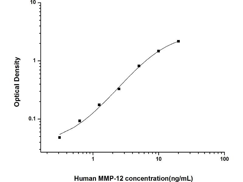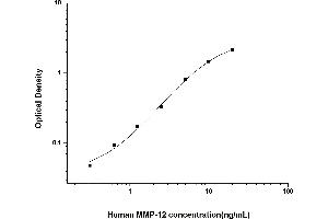 Intra-assay Precision (Precision within an assay): 3 samples with low, mid range and high level Human MMP-12 were tested 20 times on one plate, respectively. Inter-assay Precision (Precision between assays): 3 samples with low, mid range and high level Human MMP-12 were tested on 3 different plates, 20 replicates in each plate. Both intra-CV and inter-CV are < 10 %.