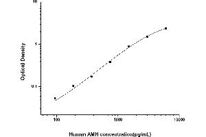 Intra-assay Precision (Precision within an assay): 3 samples with low, mid range and high level Human AMH were tested 20 times on one plate, respectively. Inter-assay Precision (Precision between assays): 3 samples with low, mid range and high level Human AMH were tested on 3 different plates, 20 replicates in each plate. Both intra-CV and inter-CV are < 10 %.