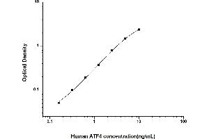 Intra-assay Precision (Precision within an assay): 3 samples with low, mid range and high level Human ATF4 were tested 20 times on one plate, respectively. Inter-assay Precision (Precision between assays): 3 samples with low, mid range and high level Human ATF4 were tested on 3 different plates, 20 replicates in each plate. Both intra-CV and inter-CV are < 10 %.
