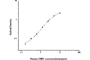 Intra-assay Precision (Precision within an assay): 3 samples with low, mid range and high level Human CNR1 were tested 20 times on one plate, respectively. Inter-assay Precision (Precision between assays): 3 samples with low, mid range and high level Human CNR1 were tested on 3 different plates, 20 replicates in each plate. Both intra-CV and inter-CV are < 10 %.