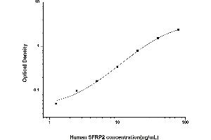 Intra-assay Precision (Precision within an assay): 3 samples with low, mid range and high level Human SFRP2 were tested 20 times on one plate, respectively. Inter-assay Precision (Precision between assays): 3 samples with low, mid range and high level Human SFRP2 were tested on 3 different plates, 20 replicates in each plate. Both intra-CV and inter-CV are < 10 %.