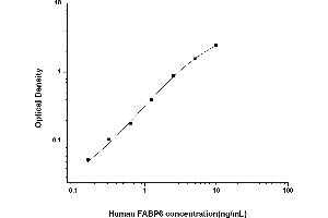 Intra-assay Precision (Precision within an assay): 3 samples with low, mid range and high level Human FABP6 were tested 20 times on one plate, respectively. Inter-assay Precision (Precision between assays): 3 samples with low, mid range and high level Human FABP6 were tested on 3 different plates, 20 replicates in each plate. Both intra-CV and inter-CV are < 10 %.