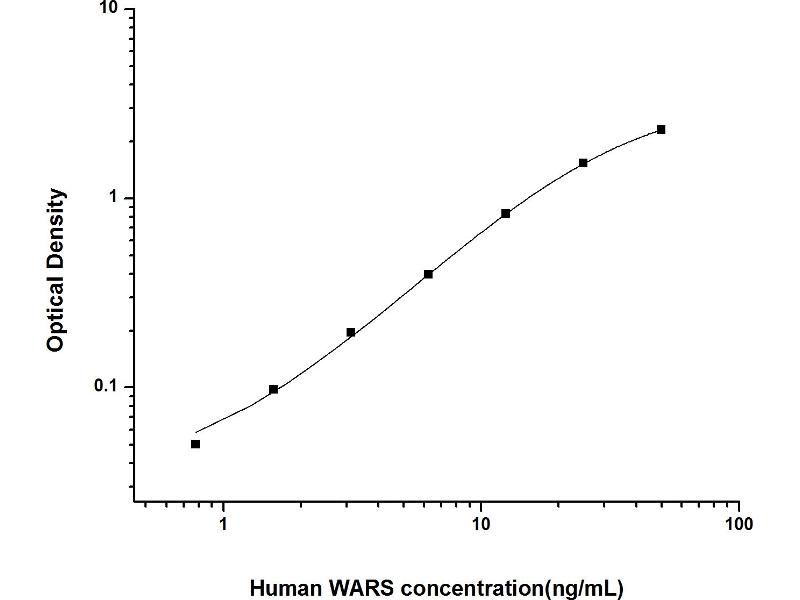 Intra-assay Precision (Precision within an assay): 3 samples with low, mid range and high level Human WARS were tested 20 times on one plate, respectively. Inter-assay Precision (Precision between assays): 3 samples with low, mid range and high level Human WARS were tested on 3 different plates, 20 replicates in each plate. Both intra-CV and inter-CV are < 10 %.
