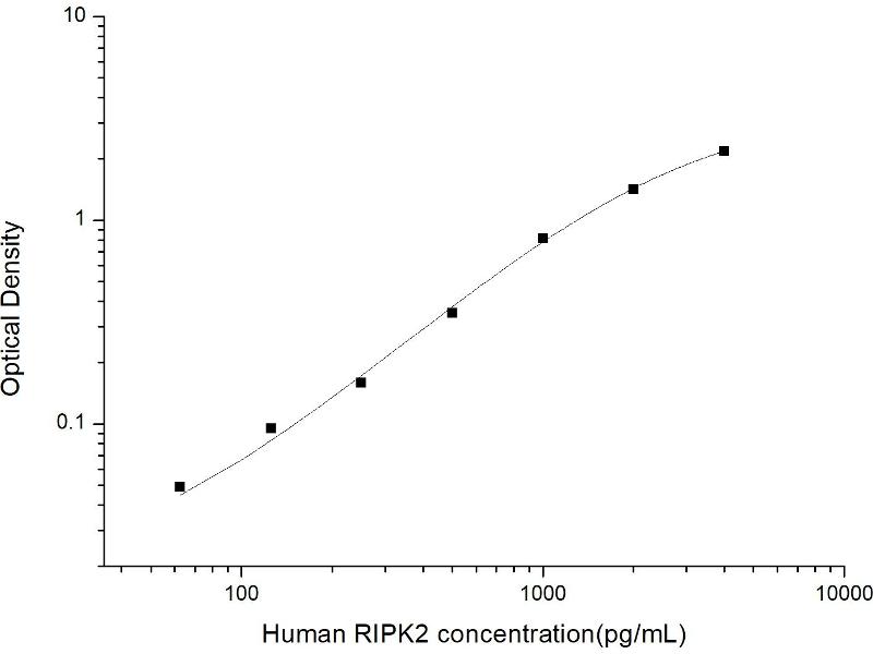 Intra-assay Precision (Precision within an assay): 3 samples with low, mid range and high level Human RIPK2 were tested 20 times on one plate, respectively. Inter-assay Precision (Precision between assays): 3 samples with low, mid range and high level Human RIPK2 were tested on 3 different plates, 20 replicates in each plate. Both intra-CV and inter-CV are < 10 %.