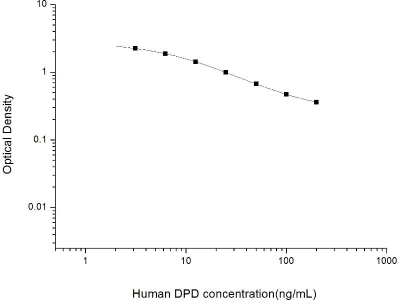 Intra-assay Precision (Precision within an assay): 3 samples with low, mid range and high level Human DPD were tested 20 times on one plate, respectively. Inter-assay Precision (Precision between assays): 3 samples with low, mid range and high level Human DPD were tested on 3 different plates, 20 replicates in each plate. Both intra-CV and inter-CV are < 10 %.