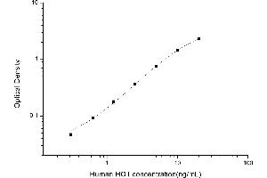Intra-assay Precision (Precision within an assay): 3 samples with low, mid range and high level Human HO1 were tested 20 times on one plate, respectively. Inter-assay Precision (Precision between assays): 3 samples with low, mid range and high level Human HO1 were tested on 3 different plates, 20 replicates in each plate. Both intra-CV and inter-CV are < 10 %.