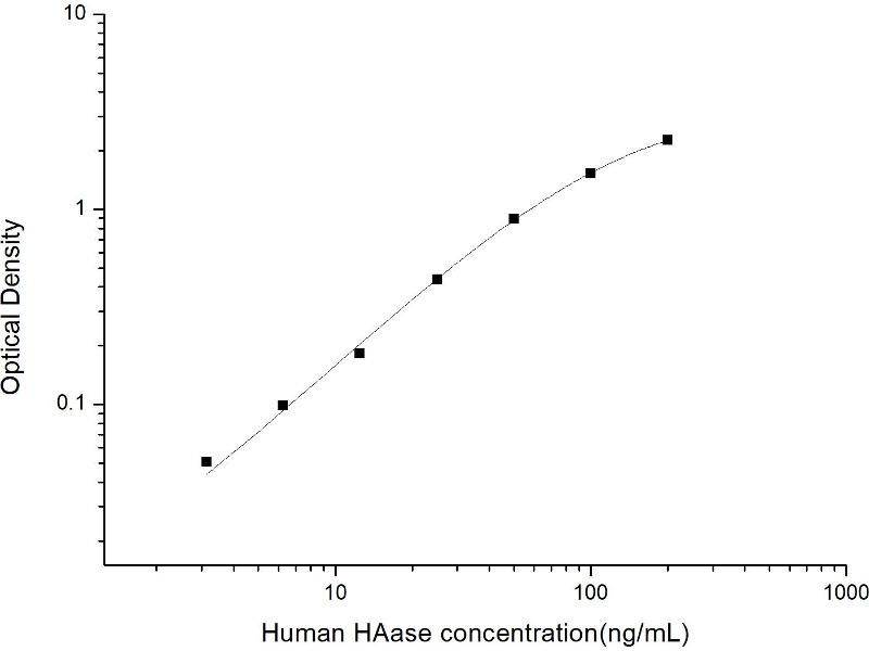 Intra-assay Precision (Precision within an assay): 3 samples with low, mid range and high level Human HAase were tested 20 times on one plate, respectively. Inter-assay Precision (Precision between assays): 3 samples with low, mid range and high level Human HAase were tested on 3 different plates, 20 replicates in each plate. Both intra-CV and inter-CV are < 10 %.