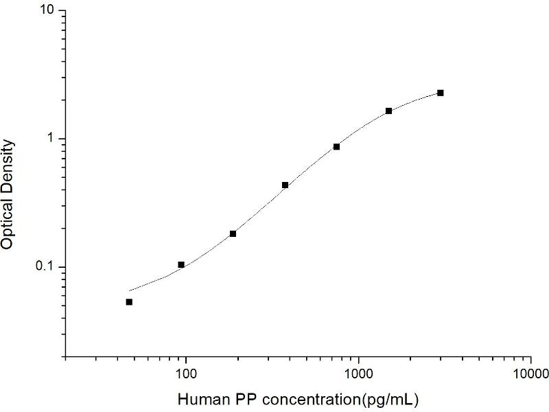 Intra-assay Precision (Precision within an assay): 3 samples with low, mid range and high level Human PP were tested 20 times on one plate, respectively. Inter-assay Precision (Precision between assays): 3 samples with low, mid range and high level Human PP were tested on 3 different plates, 20 replicates in each plate. Both intra-CV and inter-CV are < 10 %.