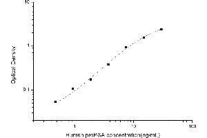 Intra-assay Precision (Precision within an assay): 3 samples with low, mid range and high level Human proPSA were tested 20 times on one plate, respectively. Inter-assay Precision (Precision between assays): 3 samples with low, mid range and high level Human proPSA were tested on 3 different plates, 20 replicates in each plate. Both intra-CV and inter-CV are < 10 %.