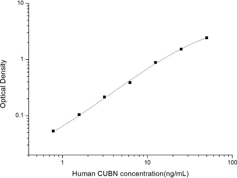 Intra-assay Precision (Precision within an assay): 3 samples with low, mid range and high level Human CUBN were tested 20 times on one plate, respectively. Inter-assay Precision (Precision between assays): 3 samples with low, mid range and high level Human CUBN were tested on 3 different plates, 20 replicates in each plate. Both intra-CV and inter-CV are < 10 %.