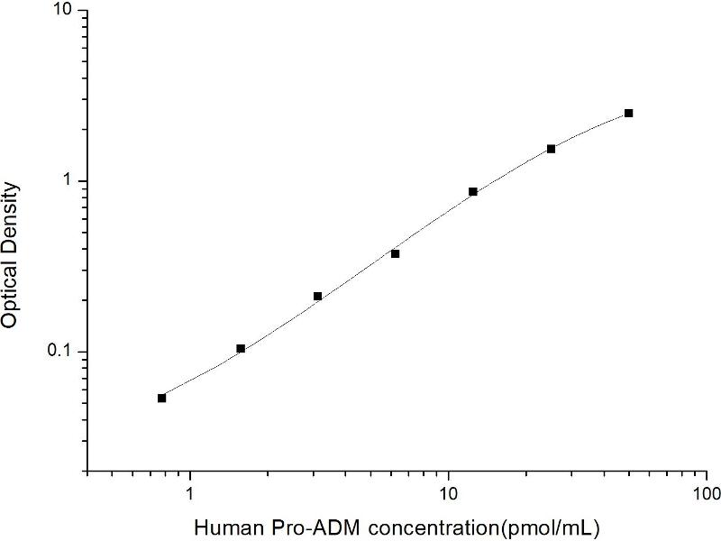 Intra-assay Precision (Precision within an assay): 3 samples with low, mid range and high level Human Pro-ADM were tested 20 times on one plate, respectively. Inter-assay Precision (Precision between assays): 3 samples with low, mid range and high level Human Pro-ADM were tested on 3 different plates, 20 replicates in each plate. Both intra-CV and inter-CV are < 10 %.