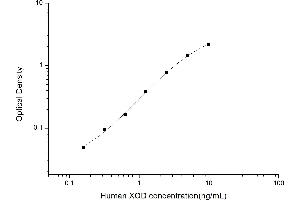 Intra-assay Precision (Precision within an assay): 3 samples with low, mid range and high level Human XOD were tested 20 times on one plate, respectively. Inter-assay Precision (Precision between assays): 3 samples with low, mid range and high level Human XOD were tested on 3 different plates, 20 replicates in each plate. Both intra-CV and inter-CV are < 10 %.
