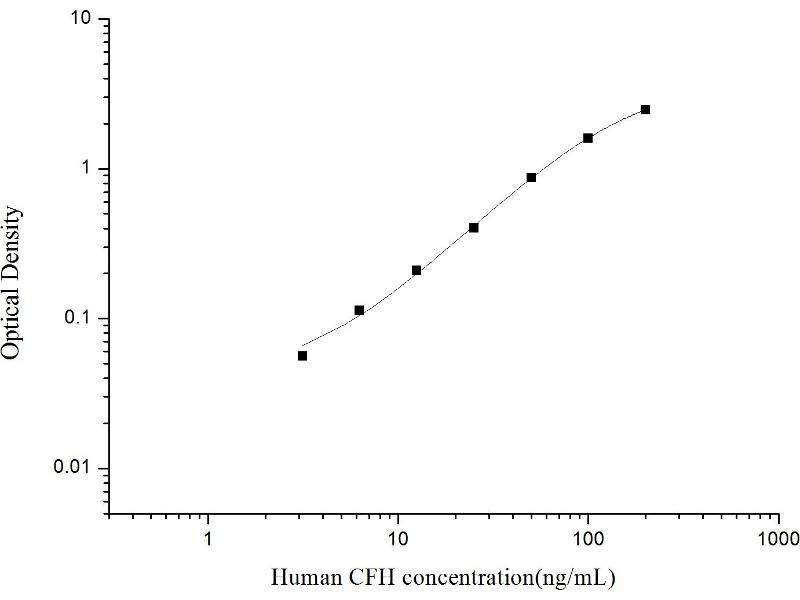 Intra-assay Precision (Precision within an assay): 3 samples with low, mid range and high level Human CFH were tested 20 times on one plate, respectively. Inter-assay Precision (Precision between assays): 3 samples with low, mid range and high level Human CFH were tested on 3 different plates, 20 replicates in each plate. Both intra-CV and inter-CV are < 10 %.