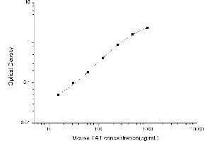 Intra-assay Precision (Precision within an assay): 3 samples with low, mid range and high level Mouse TAT were tested 20 times on one plate, respectively. Inter-assay Precision (Precision between assays): 3 samples with low, mid range and high level Mouse TAT were tested on 3 different plates, 20 replicates in each plate. Both intra-CV and inter-CV are < 10 %.