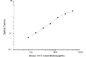 Intra-assay Precision (Precision within an assay): 3 samples with low, mid range and high level Mouse TFF3 were tested 20 times on one plate, respectively. Inter-assay Precision (Precision between assays): 3 samples with low, mid range and high level Mouse TFF3 were tested on 3 different plates, 20 replicates in each plate. Both intra-CV and inter-CV are < 10 %.