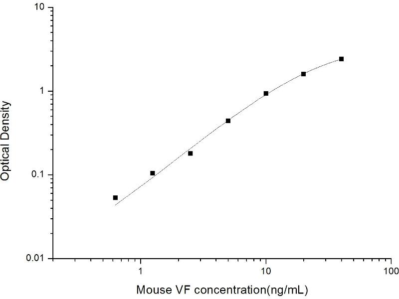 Intra-assay Precision (Precision within an assay): 3 samples with low, mid range and high level Mouse VF were tested 20 times on one plate, respectively. Inter-assay Precision (Precision between assays): 3 samples with low, mid range and high level Mouse VF were tested on 3 different plates, 20 replicates in each plate. Both intra-CV and inter-CV are < 10 %.