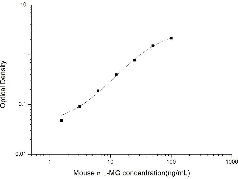 Intra-assay Precision (Precision within an assay): 3 samples with low, mid range and high level Mouse α1-MG were tested 20 times on one plate, respectively. Inter-assay Precision (Precision between assays): 3 samples with low, mid range and high level Mouse α1-MG were tested on 3 different plates, 20 replicates in each plate. Both intra-CV and inter-CV are < 10 %.