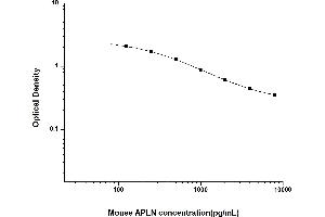 Intra-assay Precision (Precision within an assay): 3 samples with low, mid range and high level Mouse APLN were tested 20 times on one plate, respectively.