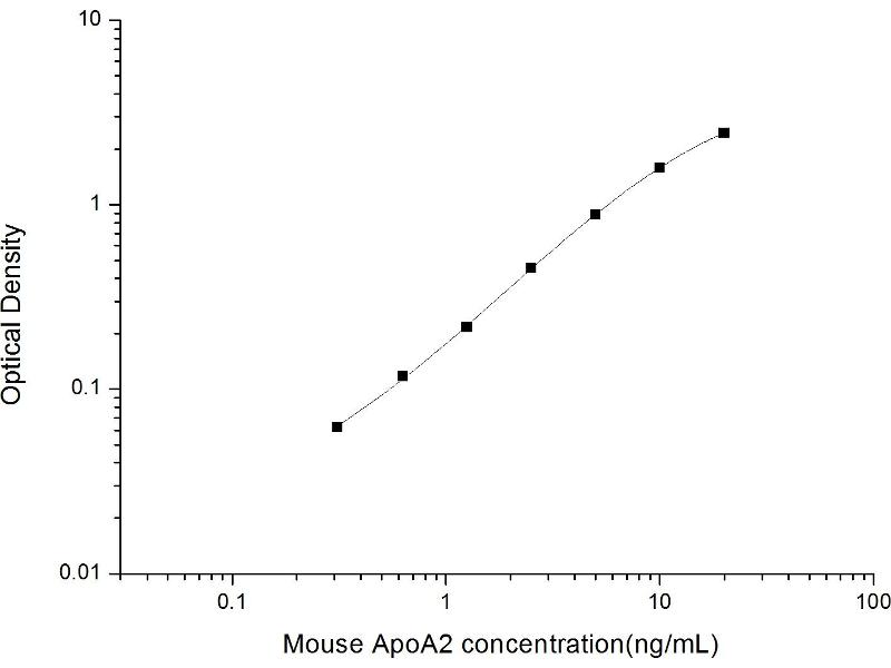 Intra-assay Precision (Precision within an assay): 3 samples with low, mid range and high level Mouse ApoA2 were tested 20 times on one plate, respectively.