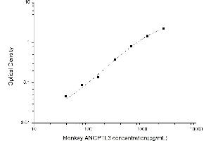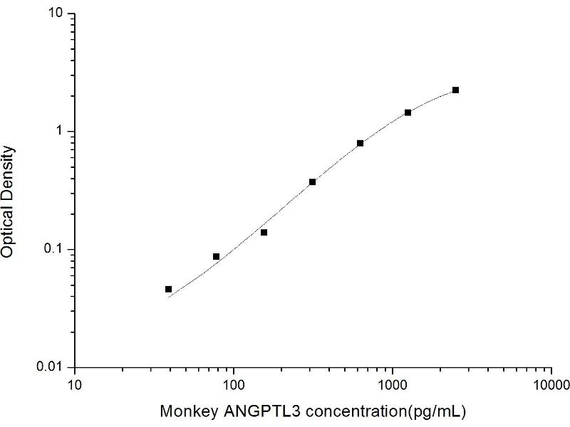 Intra-assay Precision (Precision within an assay): 3 samples with low, mid range and high level Monkey ANGPTL3 were tested 20 times on one plate, respectively. Inter-assay Precision (Precision between assays): 3 samples with low, mid range and high level Monkey ANGPTL3 were tested on 3 different plates, 20 replicates in each plate. Both intra-CV and inter-CV are < 10 %.