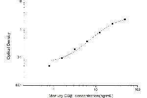 Intra-assay Precision (Precision within an assay): 3 samples with low, mid range and high level Monkey CGβ were tested 20 times on one plate, respectively. Inter-assay Precision (Precision between assays): 3 samples with low, mid range and high level Monkey CGβ were tested on 3 different plates, 20 replicates in each plate. Both intra-CV and inter-CV are < 10 %.