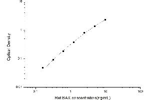 Intra-assay Precision (Precision within an assay): 3 samples with low, mid range and high level Rat BAX were tested 20 times on one plate, respectively. Inter-assay Precision (Precision between assays): 3 samples with low, mid range and high level Rat BAX were tested on 3 different plates, 20 replicates in each plate. Both intra-CV and inter-CV are < 10 %.
