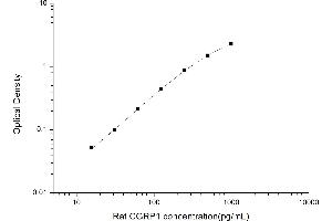 Intra-assay Precision (Precision within an assay): 3 samples with low, mid range and high level Rat CGRP1 were tested 20 times on one plate, respectively. Inter-assay Precision (Precision between assays): 3 samples with low, mid range and high level Rat CGRP1 were tested on 3 different plates, 20 replicates in each plate. Both intra-CV and inter-CV are < 10 %.