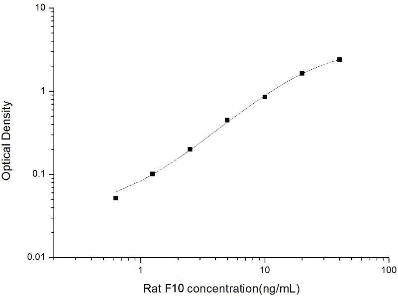 Intra-assay Precision (Precision within an assay): 3 samples with low, mid range and high level Rat F10 were tested 20 times on one plate, respectively. Inter-assay Precision (Precision between assays): 3 samples with low, mid range and high level Rat F10 were tested on 3 different plates, 20 replicates in each plate. Both intra-CV and inter-CV are < 10 %.