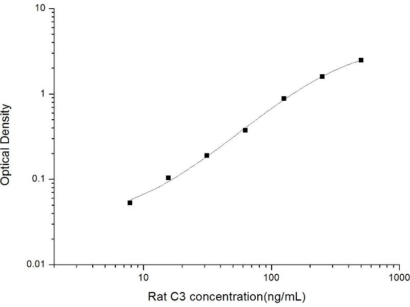 Intra-assay Precision (Precision within an assay): 3 samples with low, mid range and high level Rat C3 were tested 20 times on one plate, respectively. Inter-assay Precision (Precision between assays): 3 samples with low, mid range and high level Rat C3 were tested on 3 different plates, 20 replicates in each plate. Both intra-CV and inter-CV are < 10 %.