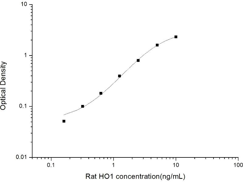 Intra-assay Precision (Precision within an assay): 3 samples with low, mid range and high level Rat HO1 were tested 20 times on one plate, respectively. Inter-assay Precision (Precision between assays): 3 samples with low, mid range and high level Rat HO1 were tested on 3 different plates, 20 replicates in each plate. Both intra-CV and inter-CV are < 10 %.