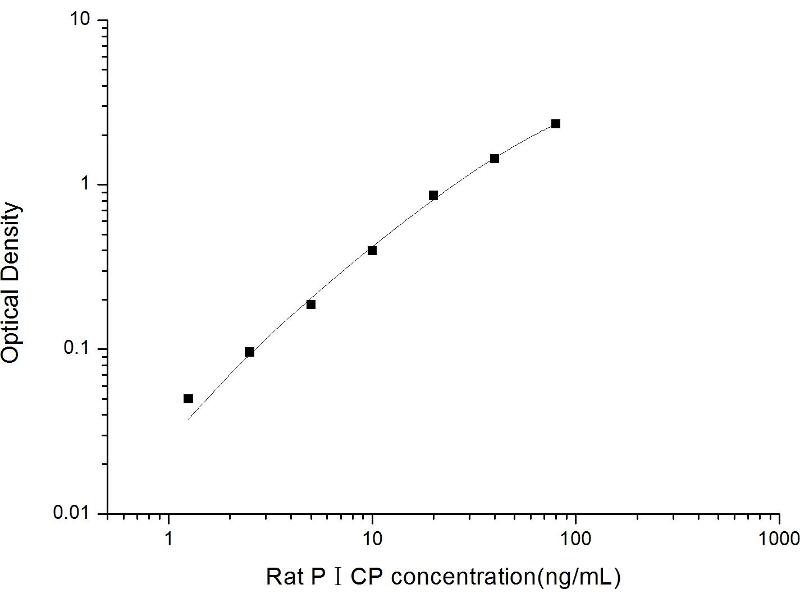 Intra-assay Precision (Precision within an assay): 3 samples with low, mid range and high level Rat PICP were tested 20 times on one plate, respectively. Inter-assay Precision (Precision between assays): 3 samples with low, mid range and high level Rat PICP were tested on 3 different plates, 20 replicates in each plate. Both intra-CV and inter-CV are < 10 %.